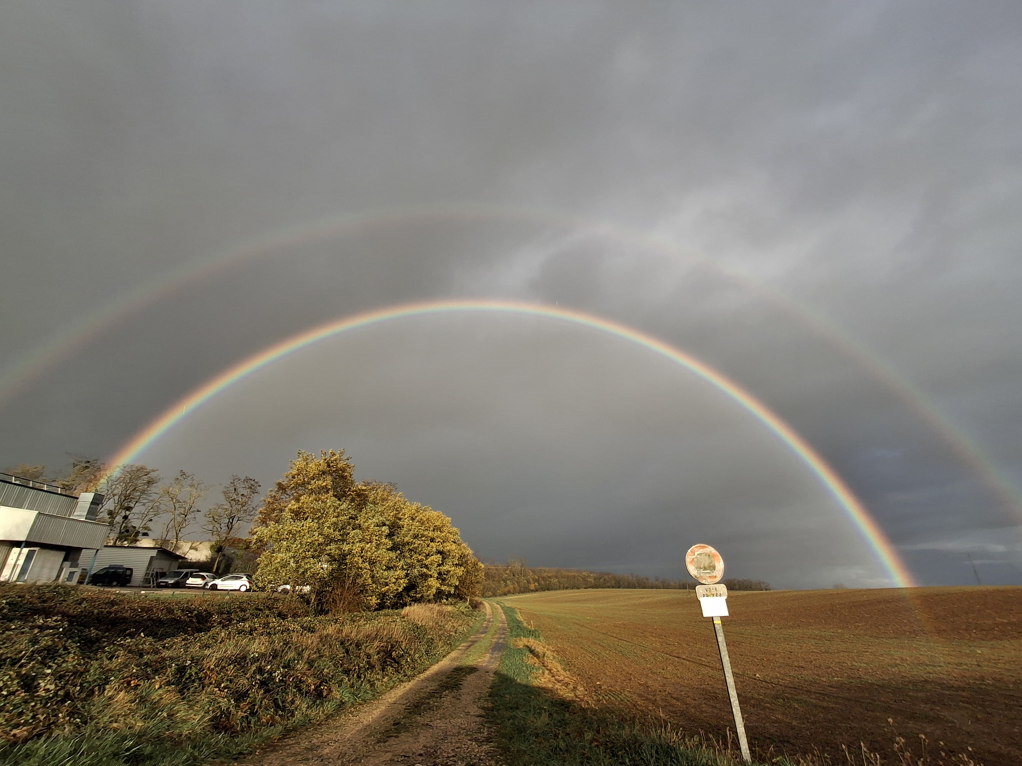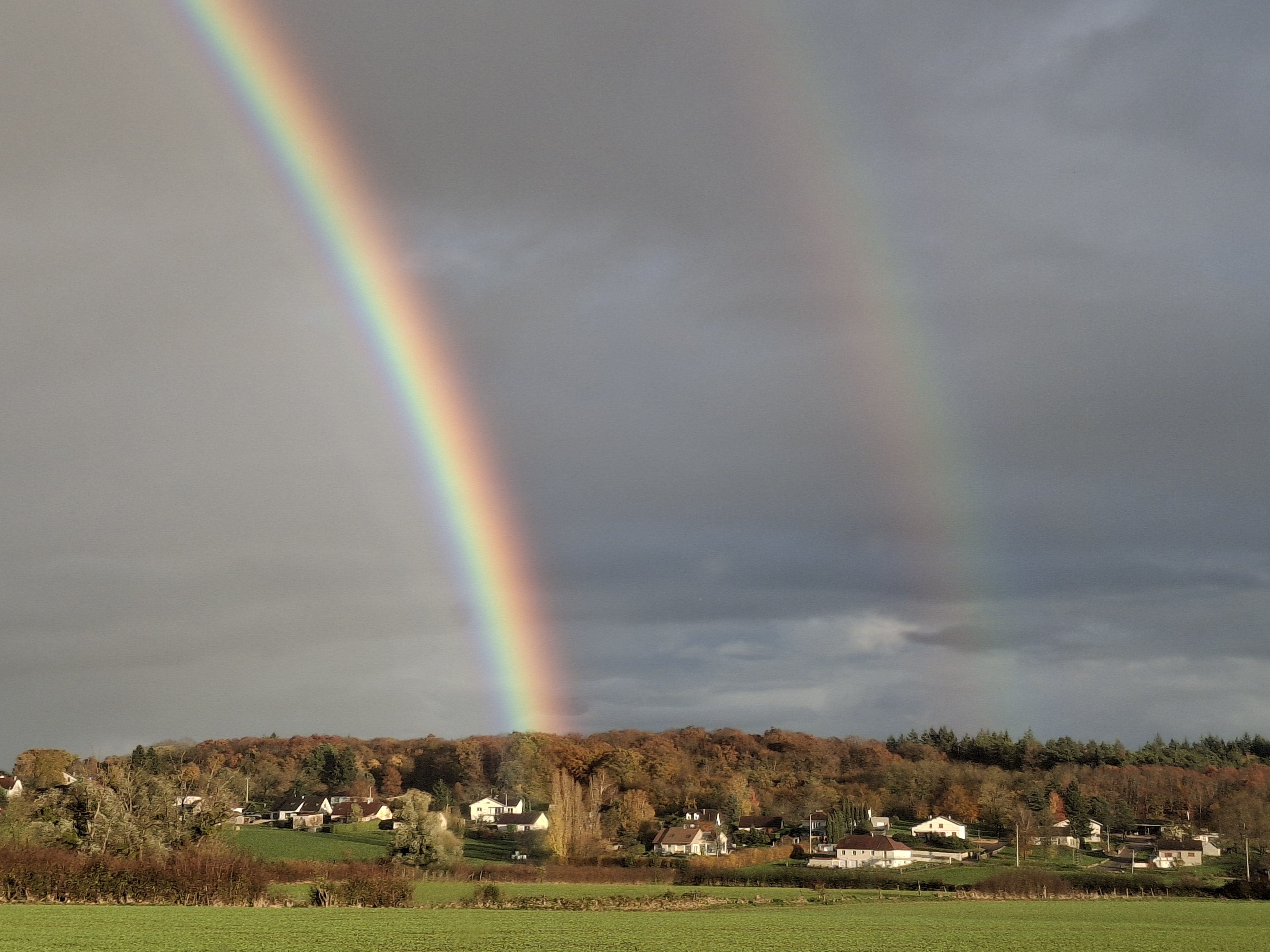 Les fortes pluies de la journée nous offrent ce beau spectacle avec l'arrivée des rayons du soleil en cette fin d'après-midi.