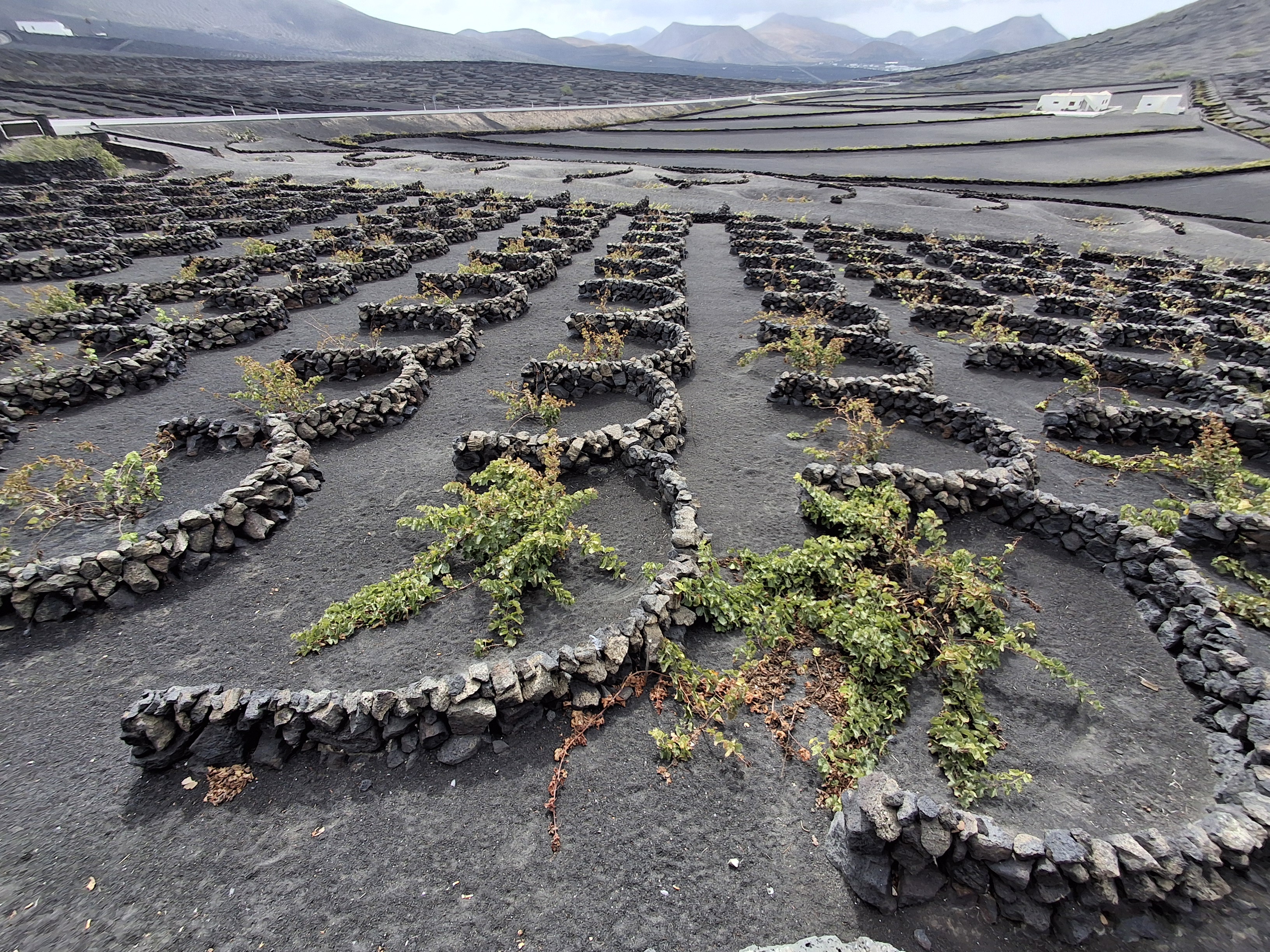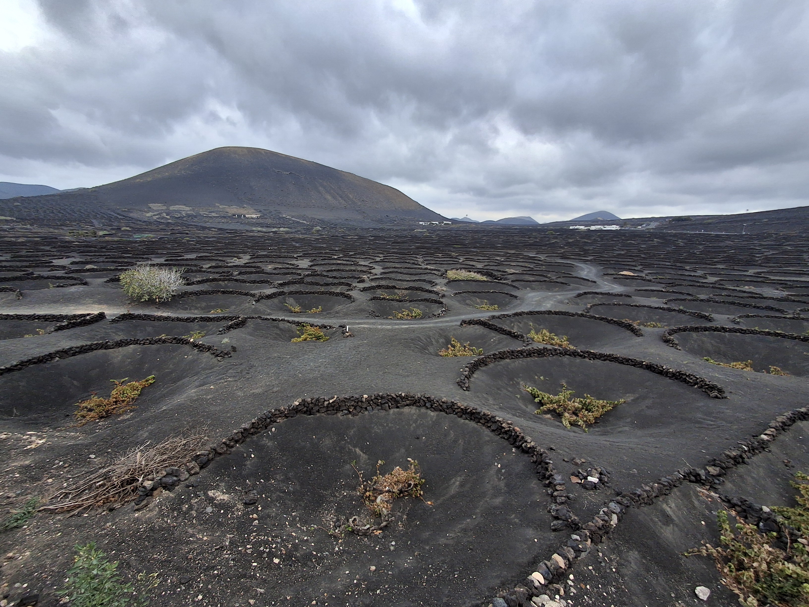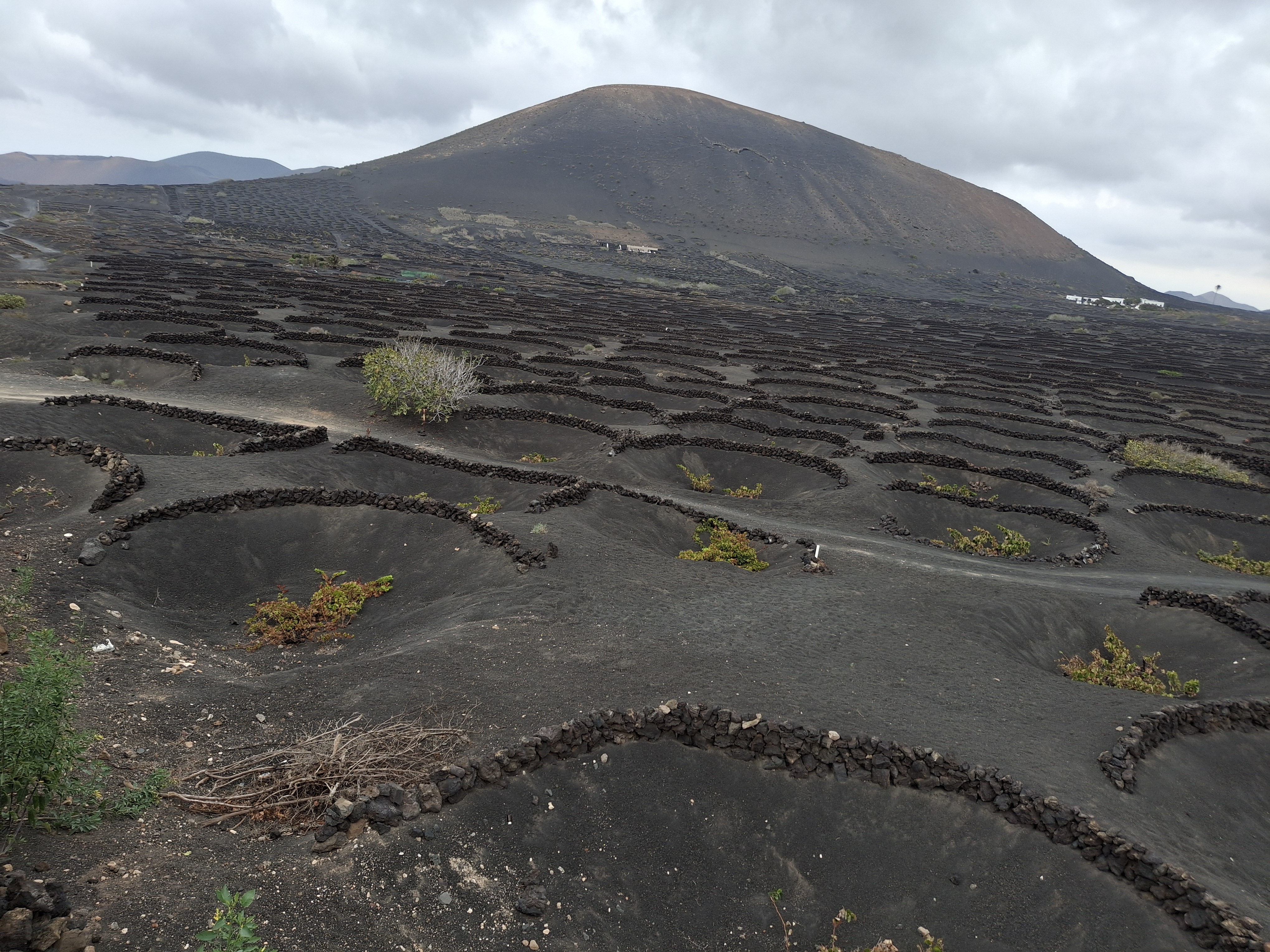 La production de vin à Geria, les plants de vignes cultivés dans la cendre (le picone) des volcans.