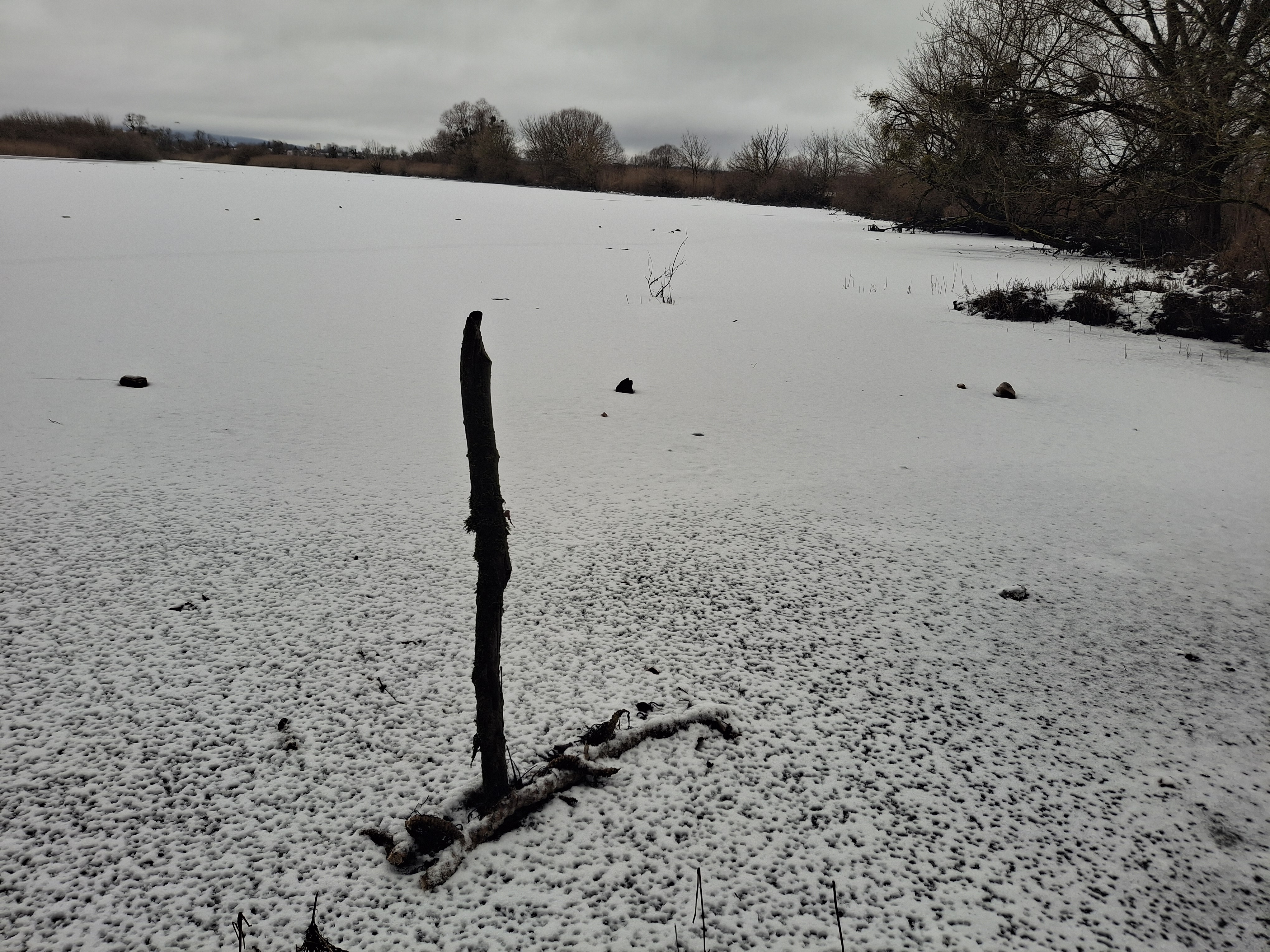 Depuis quelques jours une fine pellicule de neige à recouvert la plaine Dolois. Des tepératures négatives ed -6°C à 0°C ont figé le canal.