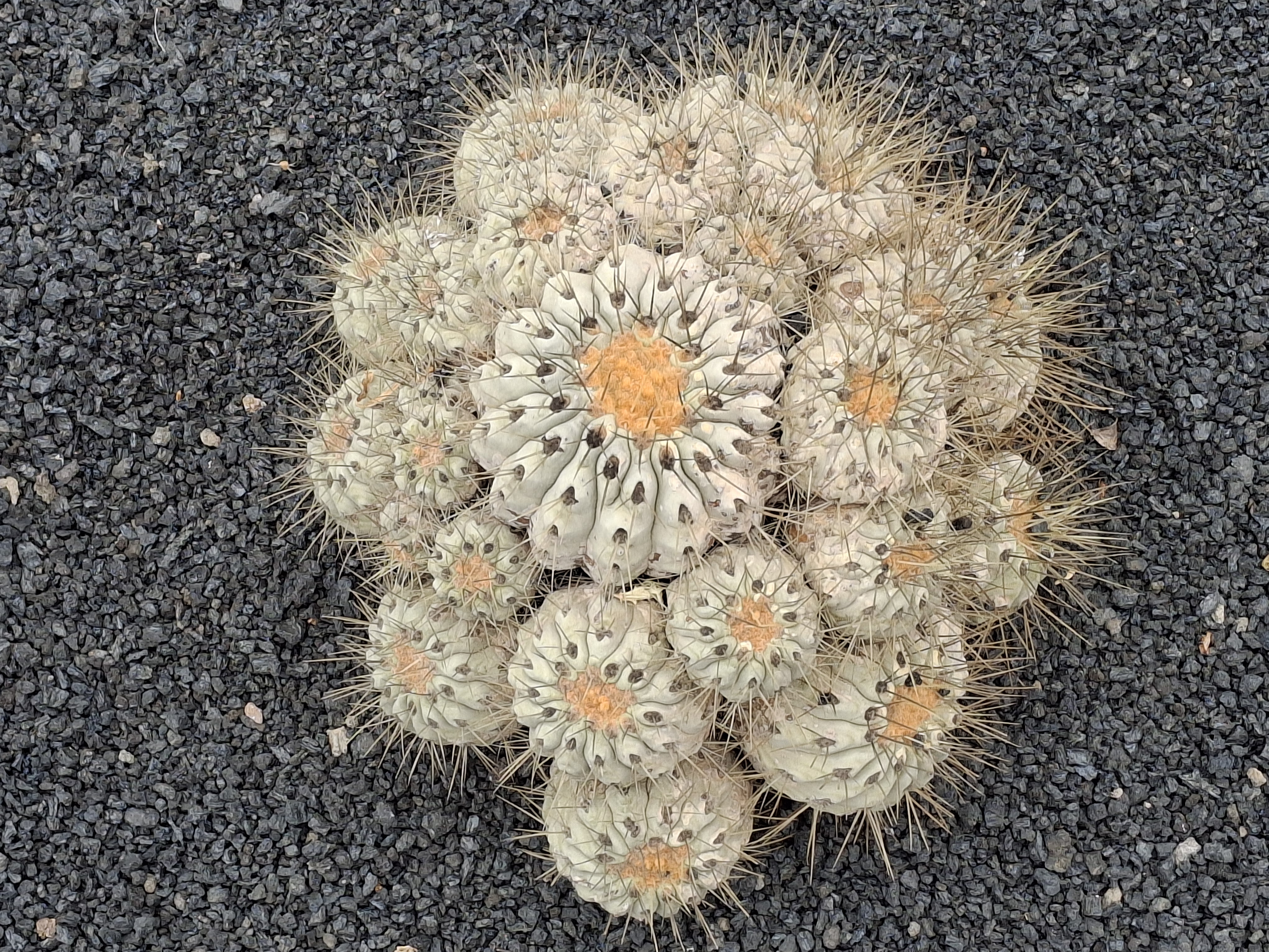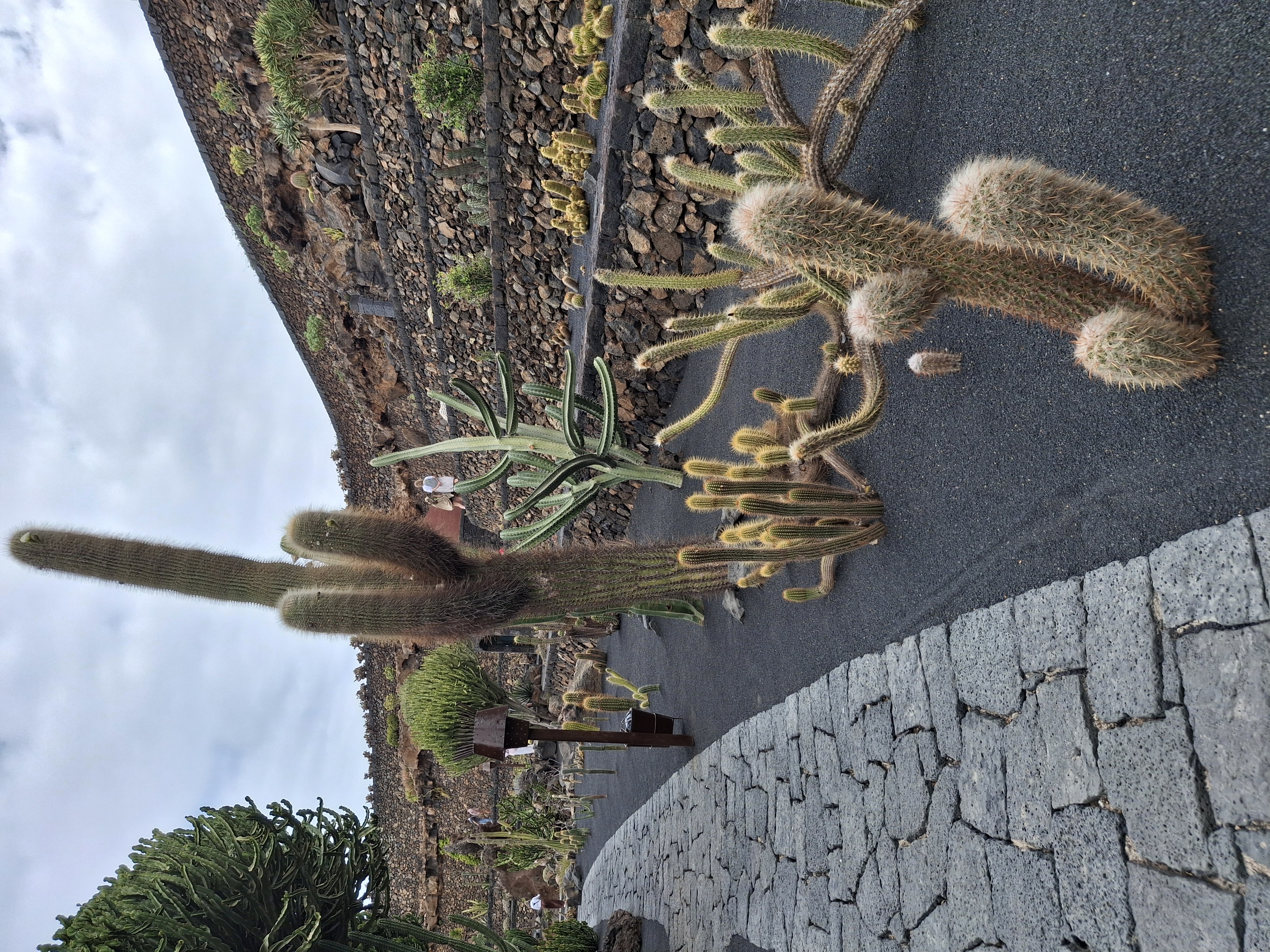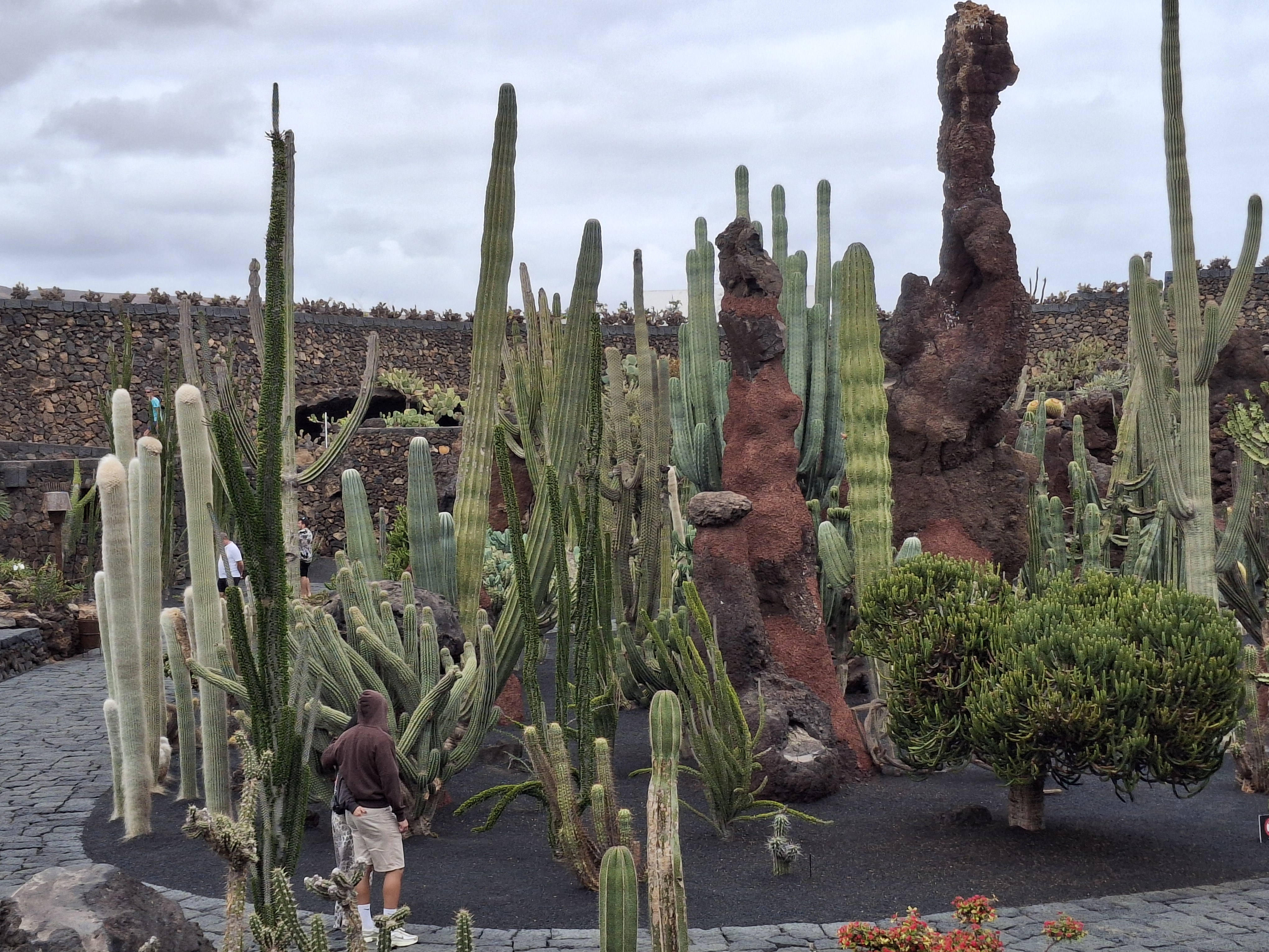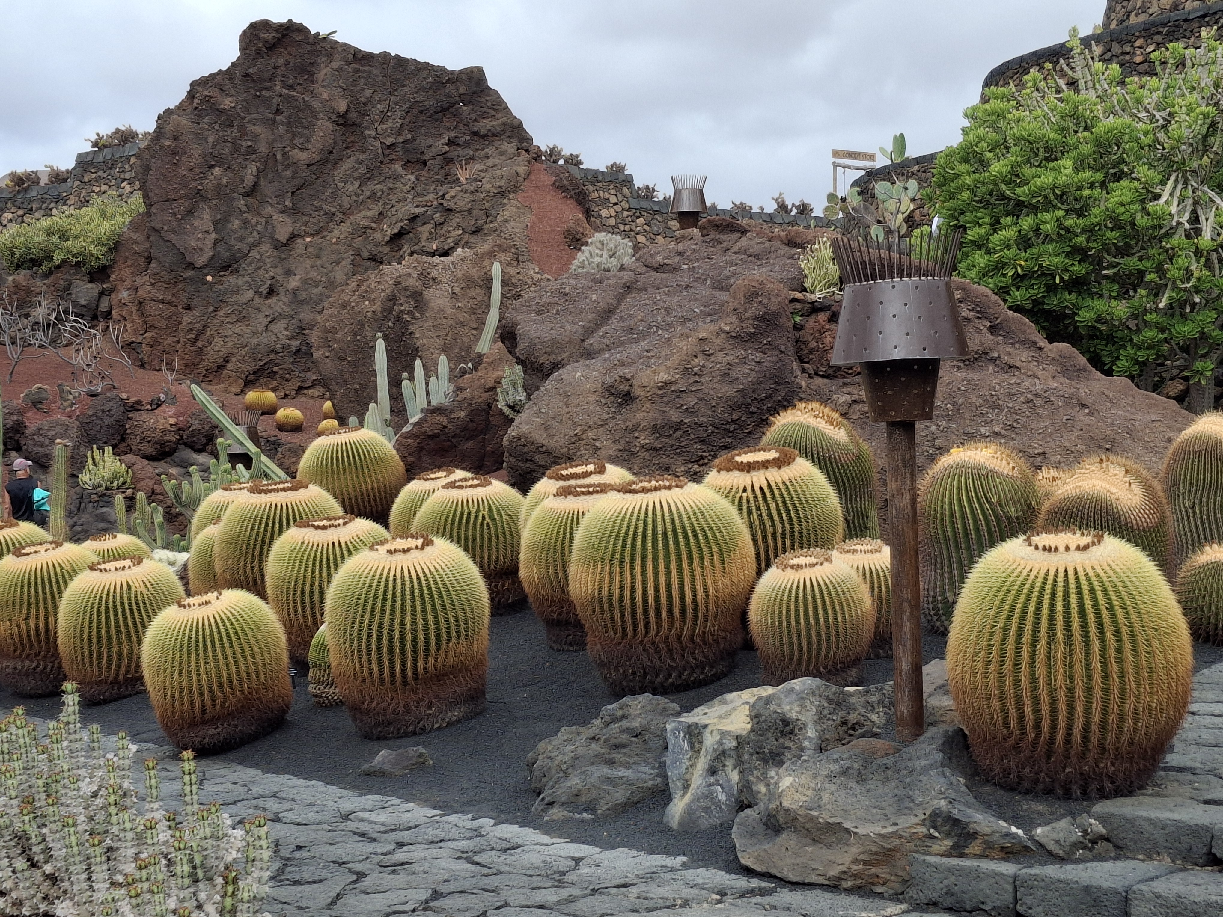 Visite du magnifique jardin de cactus de Guatiza, 1400 espèces présentées dans un site aménagé en amphitéâtre de pierre volcanique.