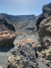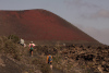 Visite des champs de lave et du cratère du volcan el Cuervo, caldera de 50 mètres de profondeur.