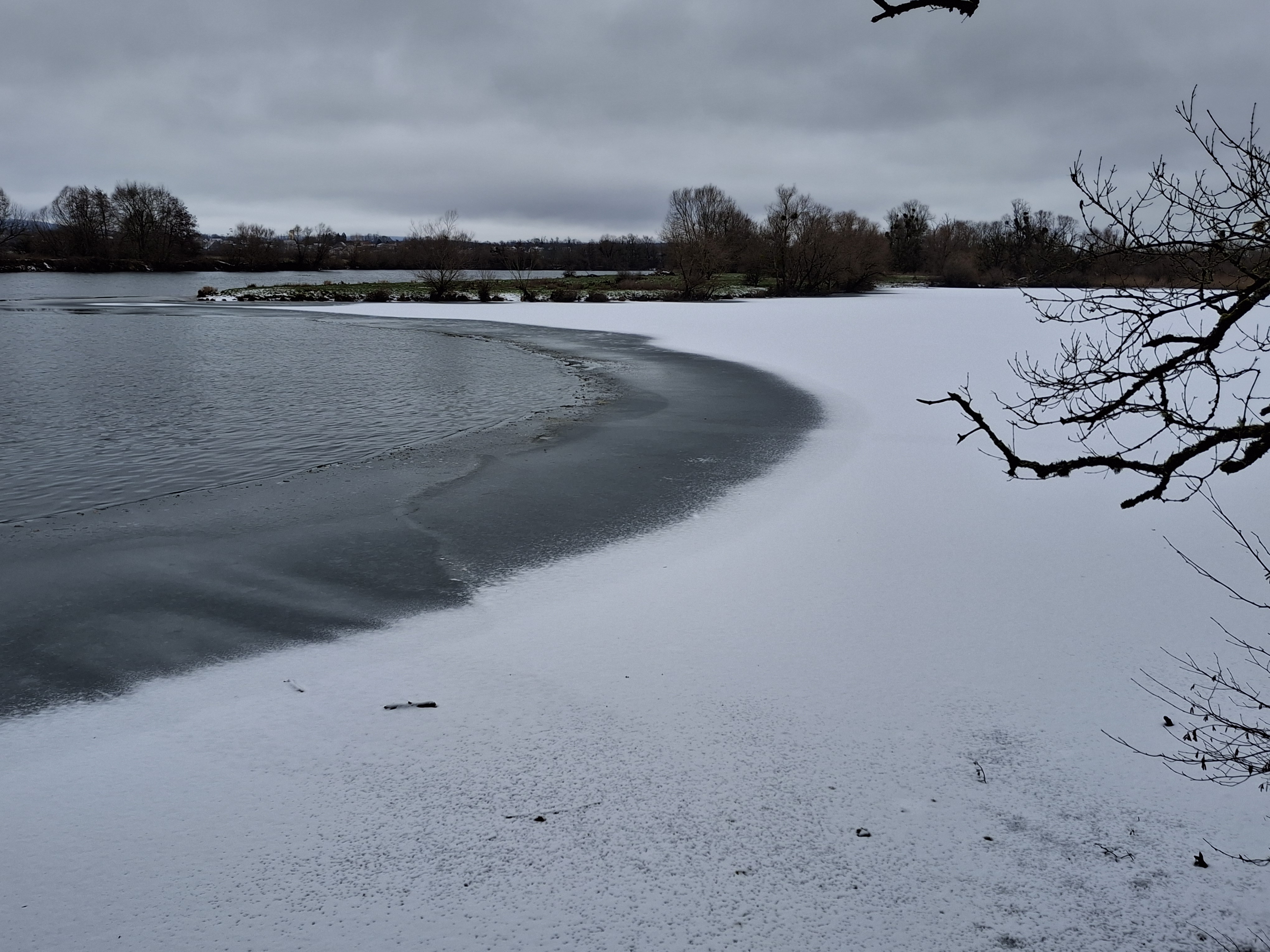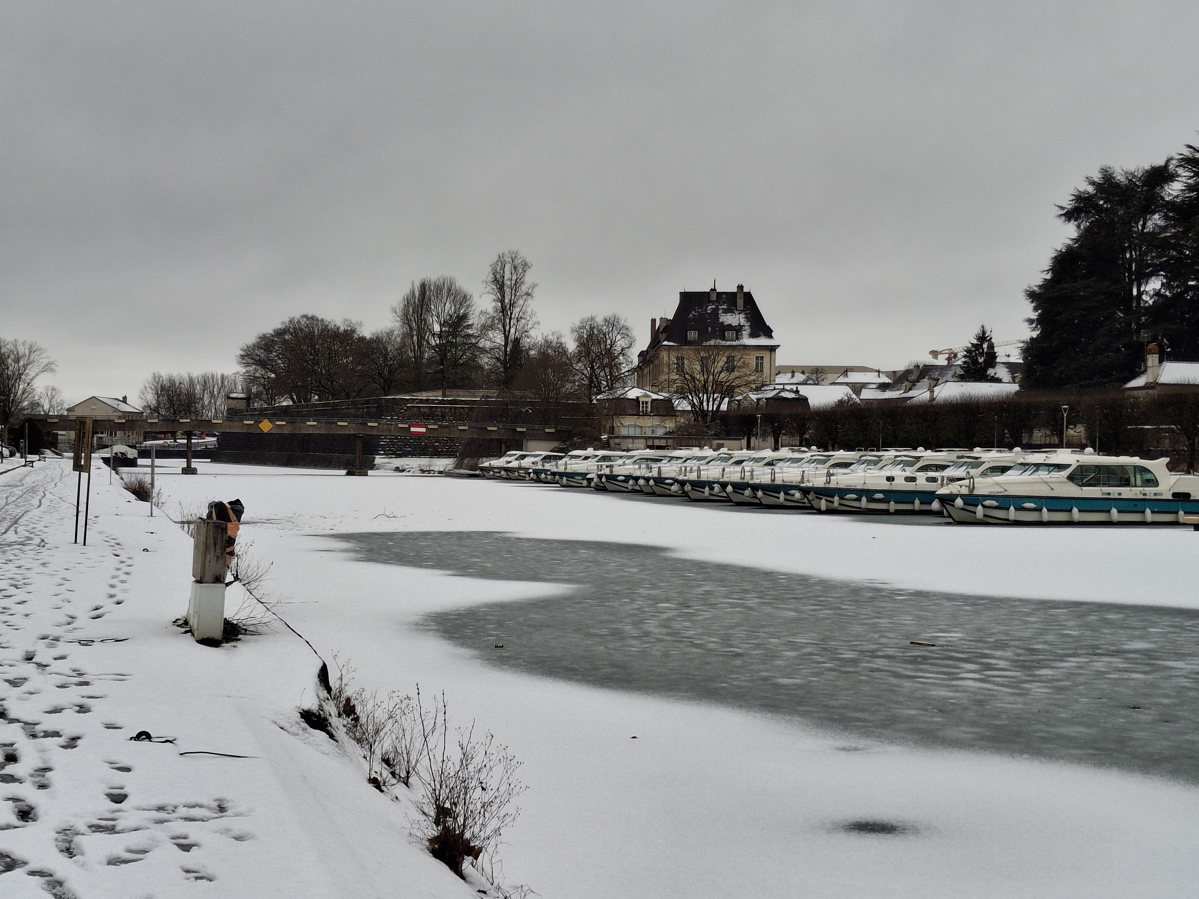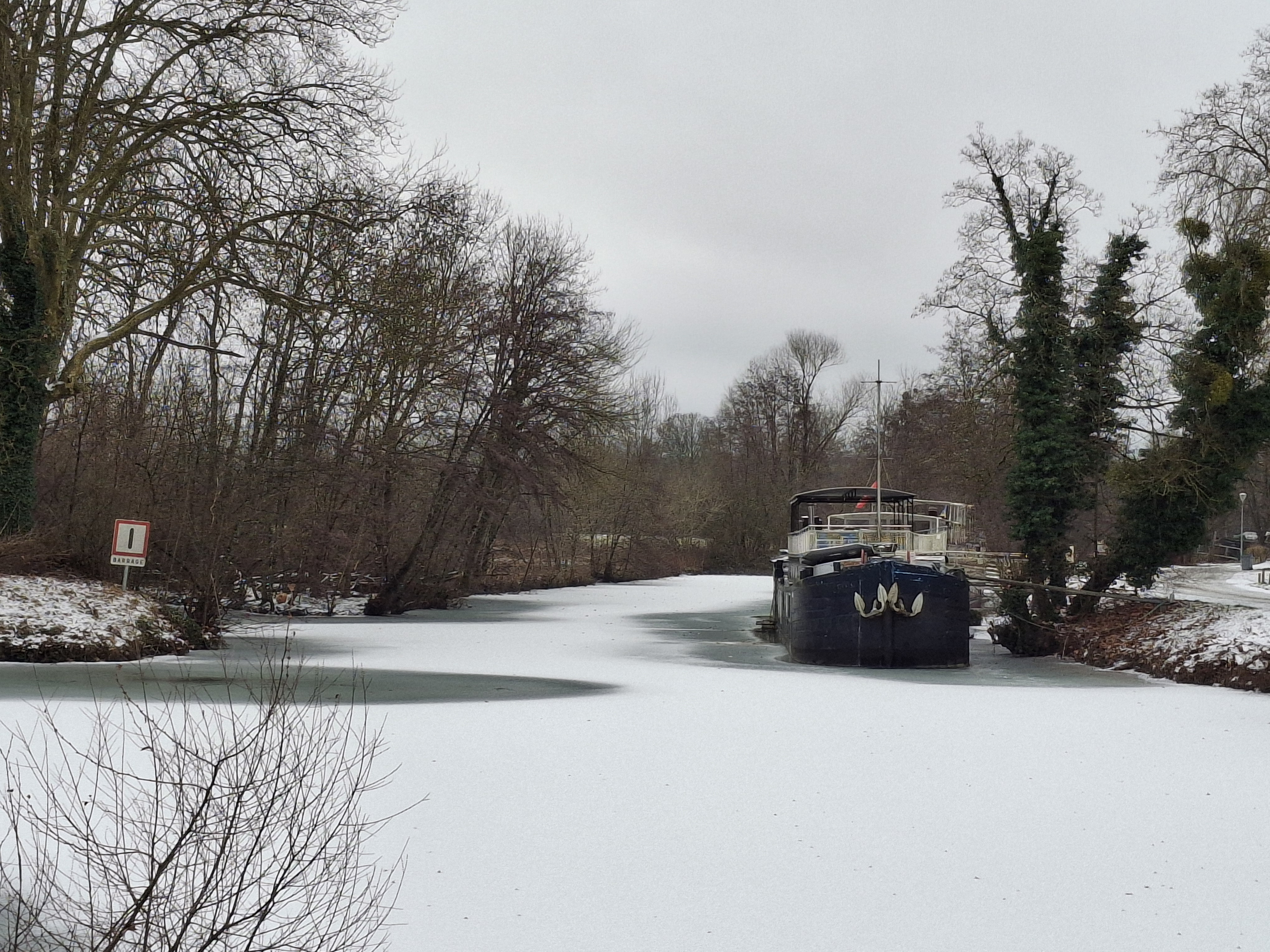 Depuis quelques jours une fine pellicule de neige à recouvert la plaine Dolois. Des tepératures négatives ed -6°C à 0°C ont figé le canal.